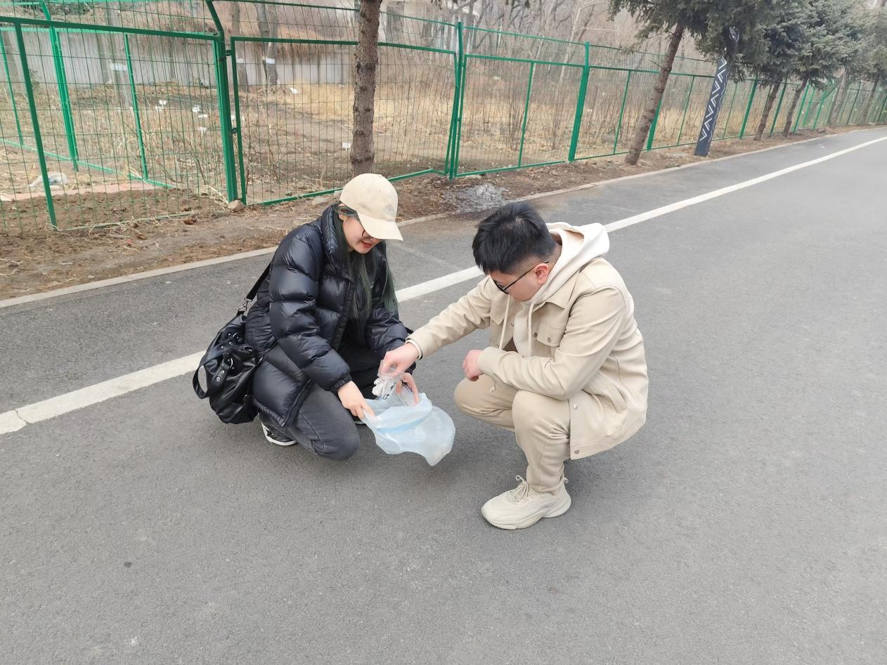 支部的青年党员们在校内校外分别开展了实践活动。在校园内,支部党员们将路边摆放不整齐的自行车摆正位置,将被风吹倒的自行车扶起,以免造成损坏;他们还前往林场,拾取路面和草丛中的垃圾,维护环境清洁,争做环保小卫士。