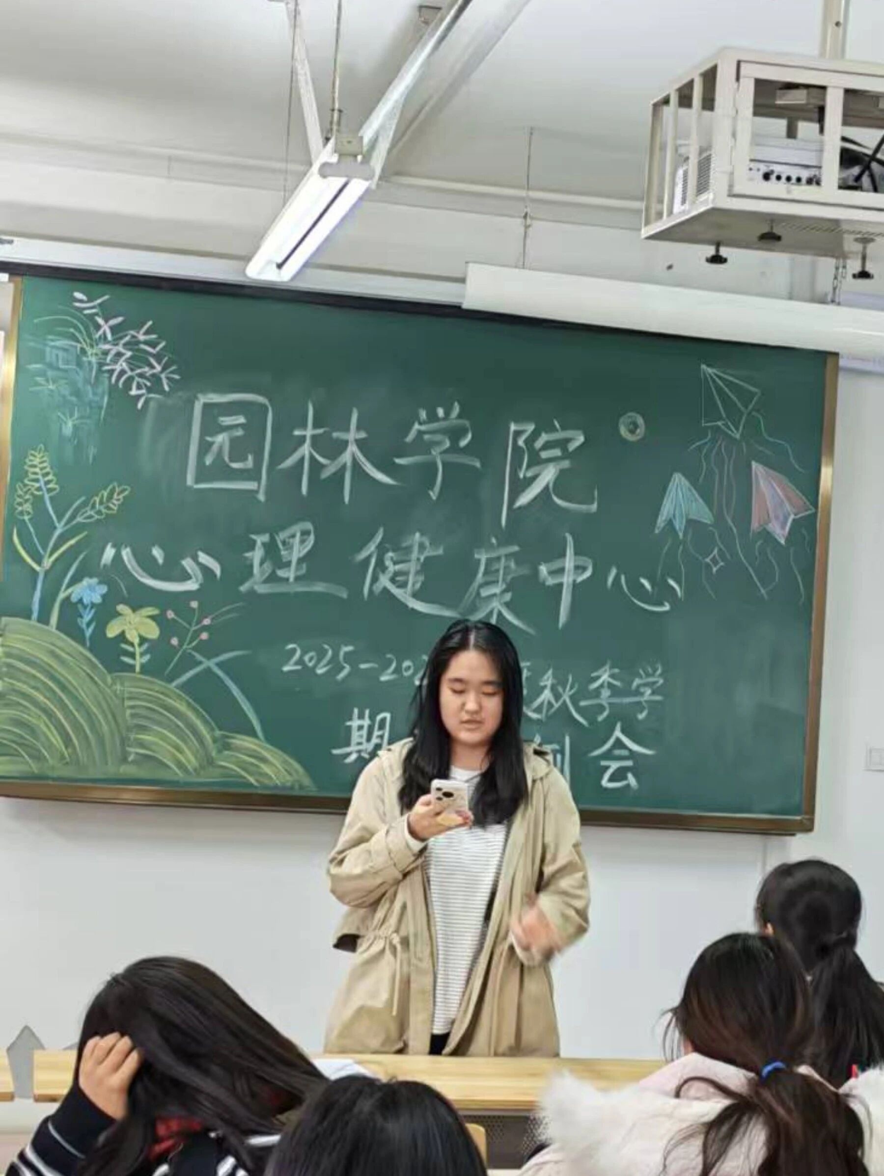 会议伊始,中心主任静泉霖首先系统阐述了心理健康中心的组织架构、功能定位与新学期愿景。他强调,中心是服务学院学子心理健康的重要平台,并详细解读了本学期的工作目标与考评标准,期望全体成员以专业精神和高度责任感,共同营造积极健康的校园心理氛围。