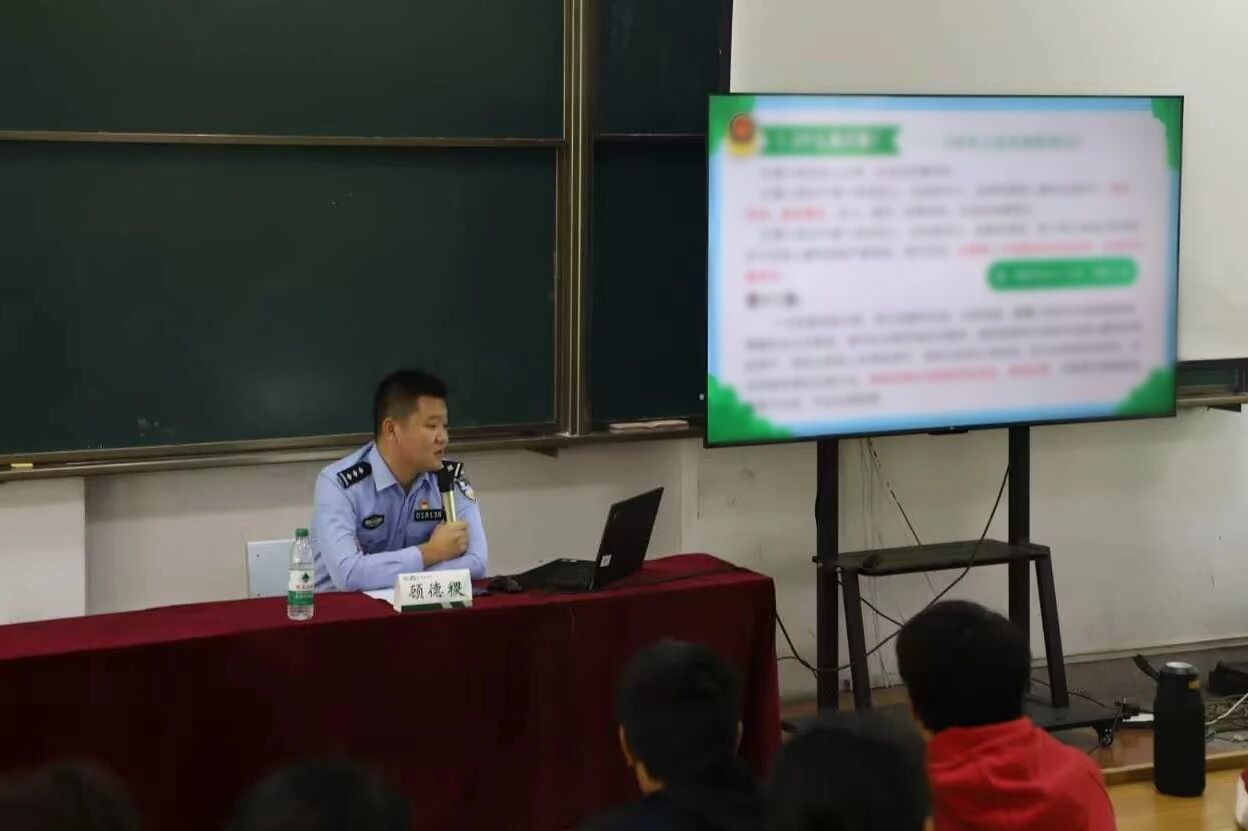 “中奖?机票退改签?统统都是骗局!”上午十时,哈尔滨市公安局南岗分局法制大队民警顾德稷为大一的同学们带来一场生动的法律知识进校园讲座。顾警官从同学们常见的违法犯罪行为、电信网络诈骗法律知识、网络安全法律法规等内容展开分享,结合我市大学生发生的真实案例作警醒,提醒同学们“天网恢恢,疏而不漏”。本次讲座用专业力量守护学生财产安全,切实织密校园反诈“安全网”,为平安校园、法治校园建设保驾护航。