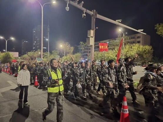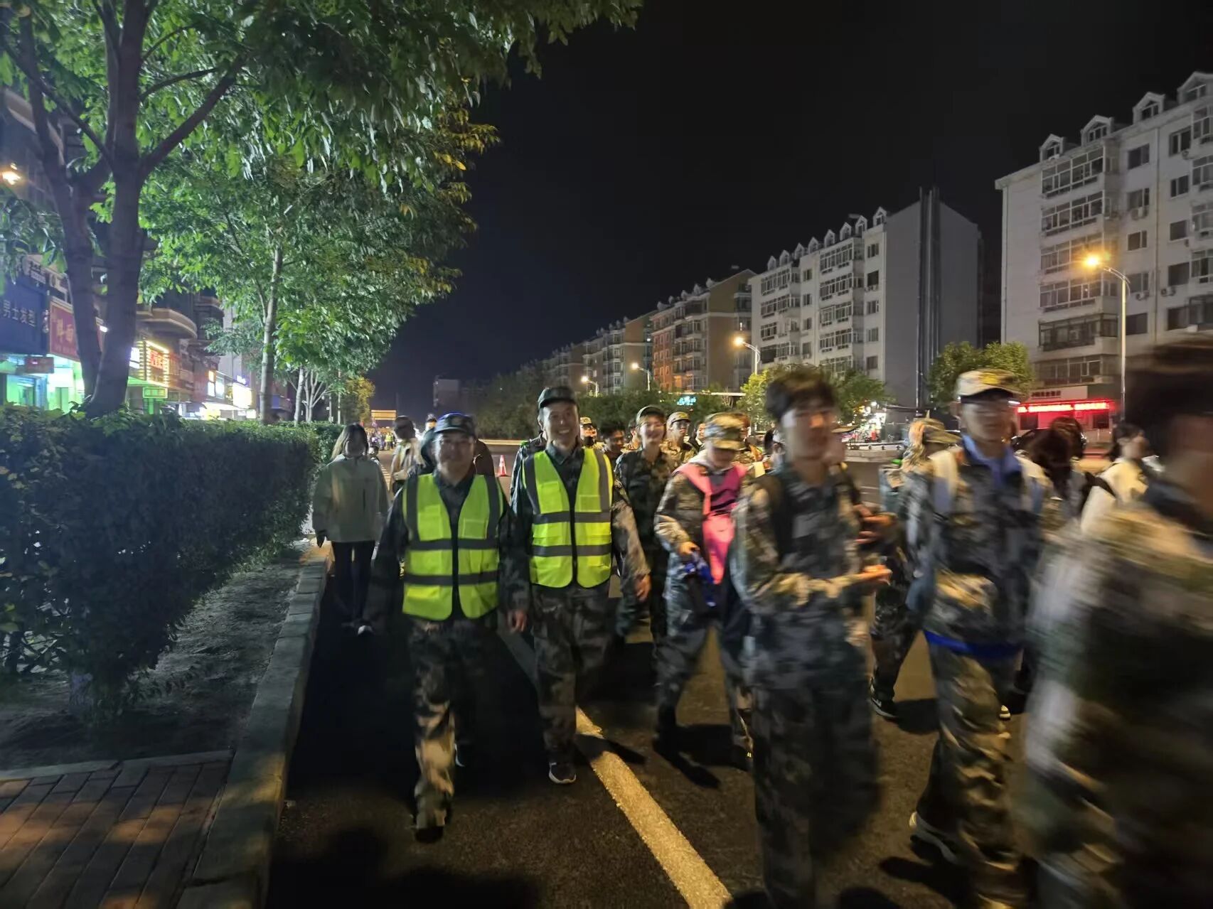 铭记历史,吾辈自强。这不仅是一场征途的开端,更是一次意志的淬炼,在肃穆的氛围中整装待发。学工组辅导员老师、军训教官及新生代理班主任全程同行。晚风拂过,仿佛带来历史的回响,一声“出发”令下,全体师生迎着月色,踏上了这场承载特殊意义的15公里征程。