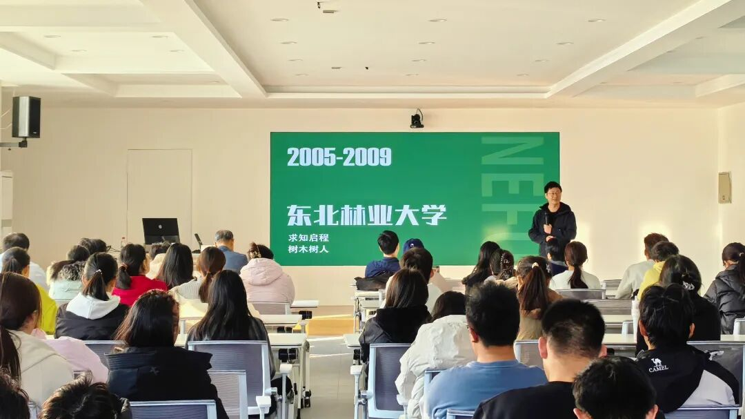 座谈会中,车迪校友深情回顾了自己在东林的求学岁月,讲述了自己从校园理论学习到职场实战历练的成长轨迹。以“从图纸到落地”为核心,拆解了深耕行业15年的关键经验,分享了在城市公园、生态修复等各类项目中的实战心得。最后,他嘱托学弟学妹们“将正确的设计写在大地上,请纯净下去、请专注下去”,做到既要夯实植物学、工程制图等专业基础,也要保持持续学习的态度,在实践中锤炼团队协作与沟通能力,争取让每一幅图纸都能在祖国大地上落地生花。