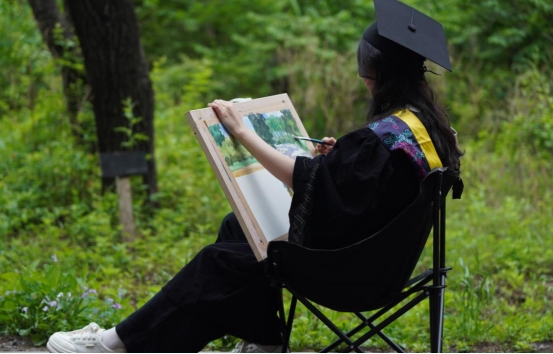 光影的流转变幻,都成了青春画布上最生动的笔触。按下快门的瞬间,画架与蓝天组成的取景框里,我们与身后的草木互为风景。