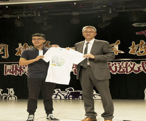 2018毕业生代表向学院赠送毕业礼物 许大为院长向毕业生代表赠送2018纪念T恤 许大为院长发表热情洋溢的讲话