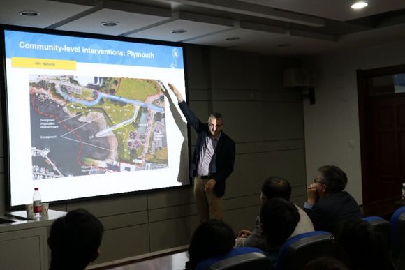当晚19:00,西蒙·贝尔教授在Betway体育西汉姆联逸夫教学楼431学术报告厅进行关于《蓝色空间的健康和幸福属性:城市景观研究的新领域》的演讲。当研究学者大都专注于绿色空间的设计时,贝尔先生提出了一个独特的“蓝色健康城市”概念。他认为,城市中居住着大量人口,我们希望城市发展呈现出健康的状态,从而保证人类的福利。蓝色基础设施可以与绿色基础设施互补,蓝色空间是一种重要资源。但是,人们对于蓝色空间——水的利用是不合理的,人类已经越来越清楚地认识到这个问题。我们可以通过蓝色和绿色基础设施的建设来保证健康城市的发展,如果我们能合理地利用水资源,会对健康城市有更好的保障。他还介绍了2种评估工具,即蓝色健康空间评估工具(BEAT)和蓝色健康行为评估工具(BBAT)。人类应该通过对蓝色和绿色空间的合理规划设计,营造更加健康的城市,让人与自然和谐相处。演讲完毕,师生对于西蒙·贝尔教授的课题产生了浓厚的兴趣,纷纷提出自己的疑问,教授给予耐心细致的解答。