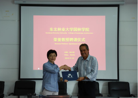 9月10日,我院在逸夫楼501会议室举办学院荣誉教授聘请仪式,参会人员有:学院院长王竞红、学院党委书记赵新勇、学院副院长李文、学副院长何淼、黑龙江省寒地园林植物与景观生态修复实验室胡远东、上海辰山植物园总园艺师Gilles Vincent教授以及上海辰山植物园总高级工程师商侃侃博士。