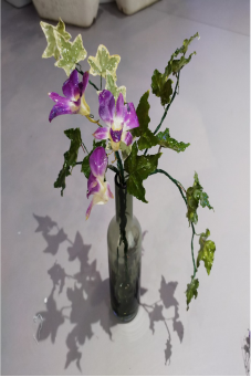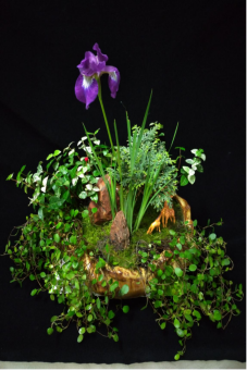 王玲教授课题组参展的作品主有四项,包括培育的溪荪鸢尾新品种‘含蓄’和‘婷蝶’切花,以溪荪新品种‘迷你粉’为主的组合盆栽,和以石斛兰和常春藤为主要材料的水晶干燥花组合花艺创作作品。