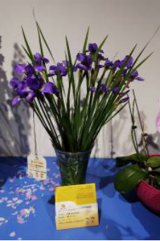 ‘含蓄’株丛直立性较好,叶片长且不弯曲,花型紧凑,花色鲜艳且花直径大。‘婷蝶’的花葶粗壮整齐,花为蓝紫色,花型奇特,形如蝴蝶。‘含蓄’和‘婷蝶’以其独特的株型花型,作为东北寒地鸢尾品种代表参加此次切花展览。