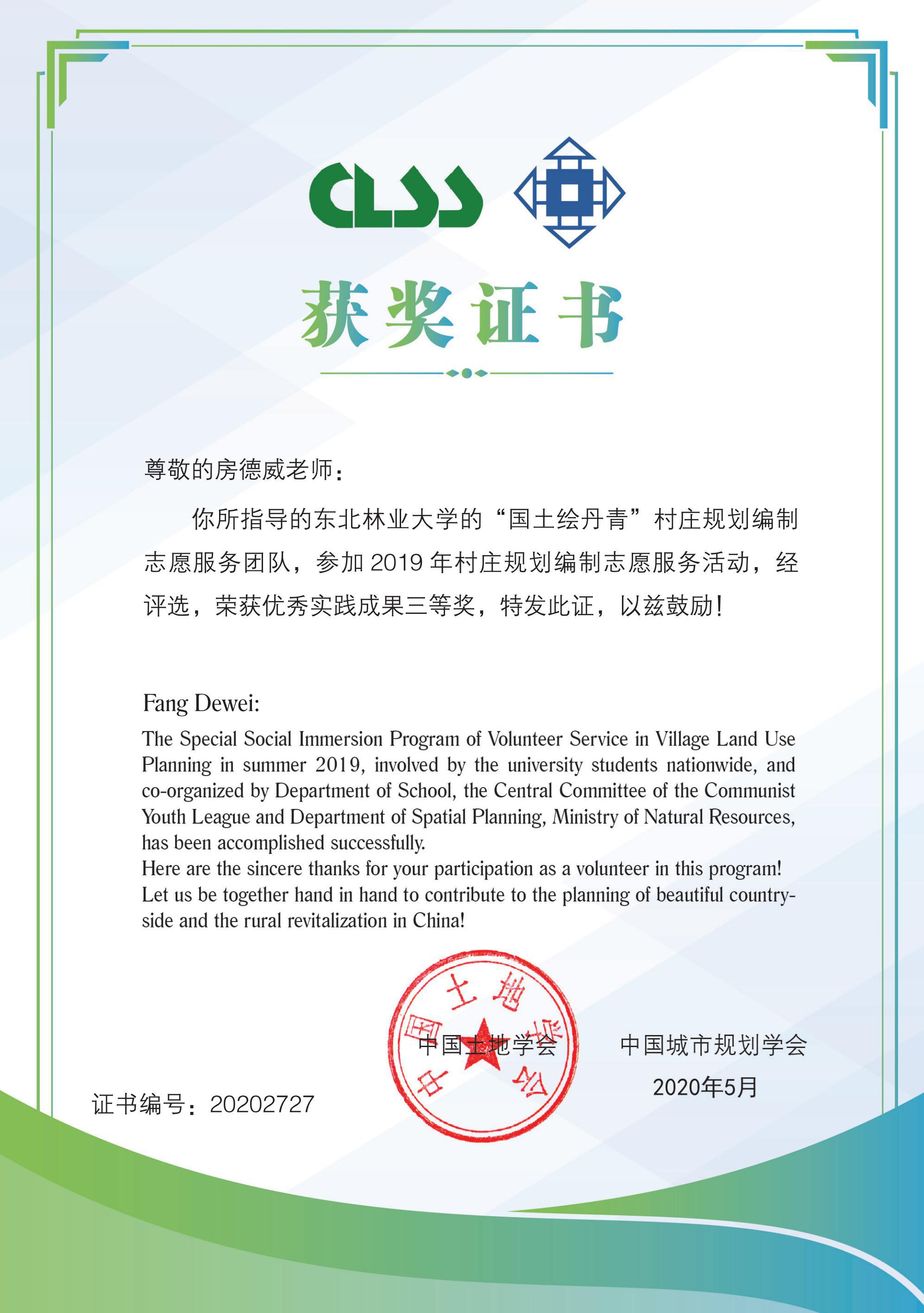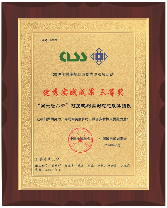 近日,在共青团中央青年发展部、自然资源部国土空间规划局的指导下,中国土地学会、中国国土勘测规划院、中国城市规划学会联合组织开展的“2019年村庄规划编制志愿服务活动”评奖结果揭晓。经组织行业专家评审,在全国共计122所高校的208支团队中,由我校Betway体育西汉姆联房德威老师指导,Betway体育西汉姆联学生孟庆祥、郝龙龙、栗达、刘磊、李航、王旌、宫傲、材料学院李昕晨、机电学院迟春晓和林学院何飞参加组成的“Betway体育西汉姆联‘国土绘丹青’村庄规划编制志愿服务团队”荣获优秀“实践成果奖三等奖”(前20%)。