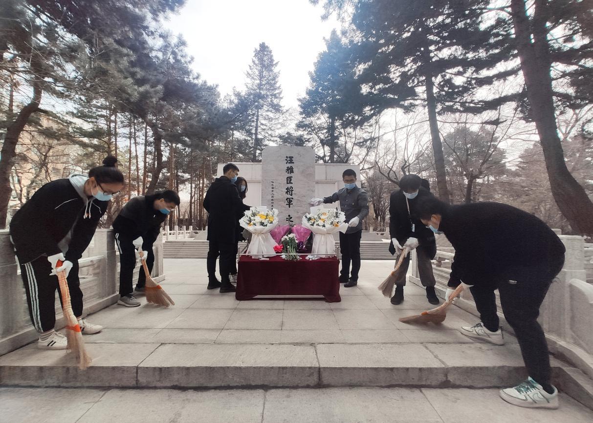 教师代表姚亮亮老师进行了简短的发言,他谈到,革命先烈是民族英雄,是中华民族的脊梁,他们的事迹和精神是激励我们前行的强大力量,汪雅臣将军是他们的优秀代表,希望青年大学生党员同志们,坚定理想信念,继承革命先烈的遗志,为建成社会主义现代化强国,实现中华民族伟大复兴走好我们这代人的长征路!随后,教师及学生党员代表依次献花,认真擦拭墓碑、清扫墓基等,借以表达对革命先烈的无限崇敬之情。