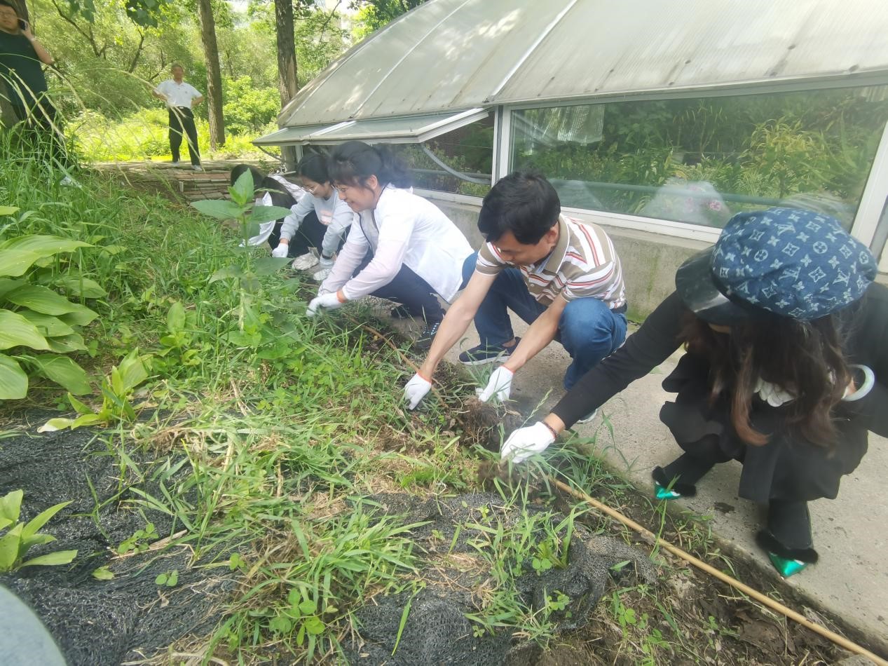 Betway体育西汉姆联领导班子与园林植物教工党支部、学生第一党支部成员共同来到学院苗圃实践教学基地,领导班子成员和教工党支部成员以身作则,除草护花,并在活动过程中开展实地教学。教师带动学生识别植物,将教学实践与劳动实践相结合,不仅为学生提供了一次良好的课堂实践的机会,更美化了实践教学基地的环境。同学们在这节师生交流互动的实践课堂上既收获了理论知识,又生动地将专业理论知识运用到实践劳动中。