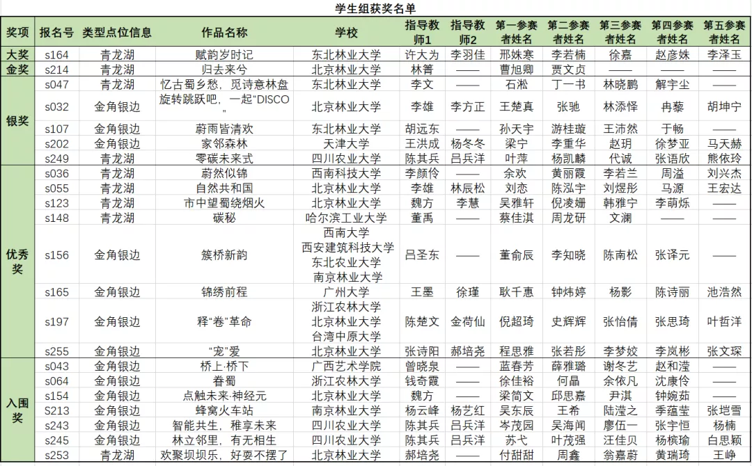 本次大赛中各组优秀的获奖作品充分表面我院学生在场景设计中有较强的专业素养、团队意识和专业创新能力。参加此次大赛,我院充分认识到以赛促学的重要作用,为了也将持续参加各类创新设计竞赛,取得更多荣誉。现将我院学生在2021公园城市未来场景创意设计大赛的获奖信息公布如下: