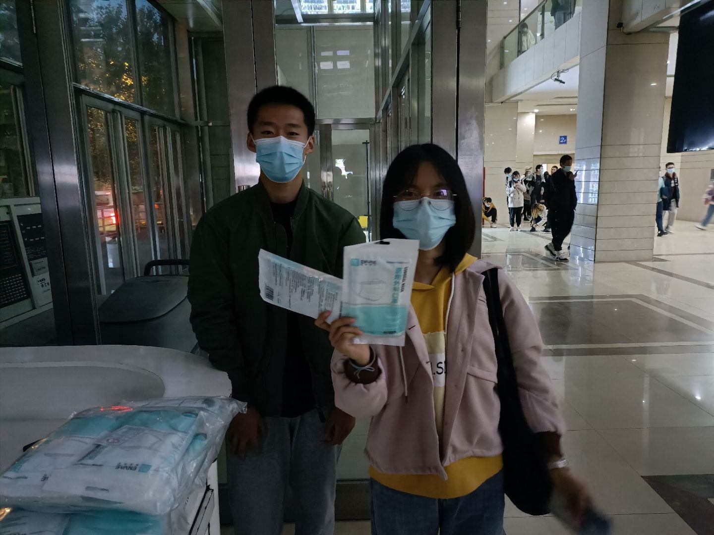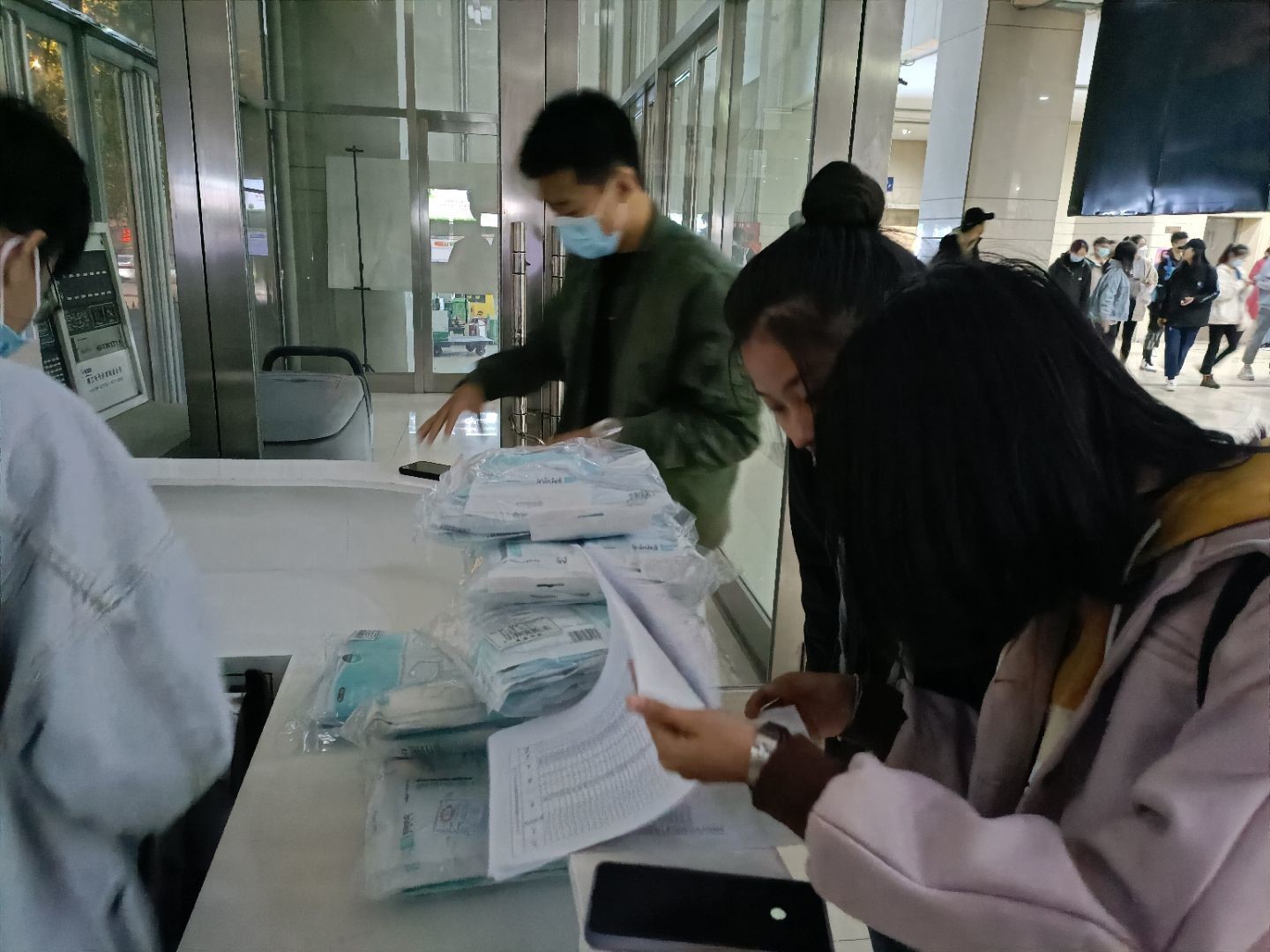 前来领取的同学们都井然有序,纷纷表示很开心能收到学院的“爱心口罩”,也感谢学院领导老师们暖心的关怀。