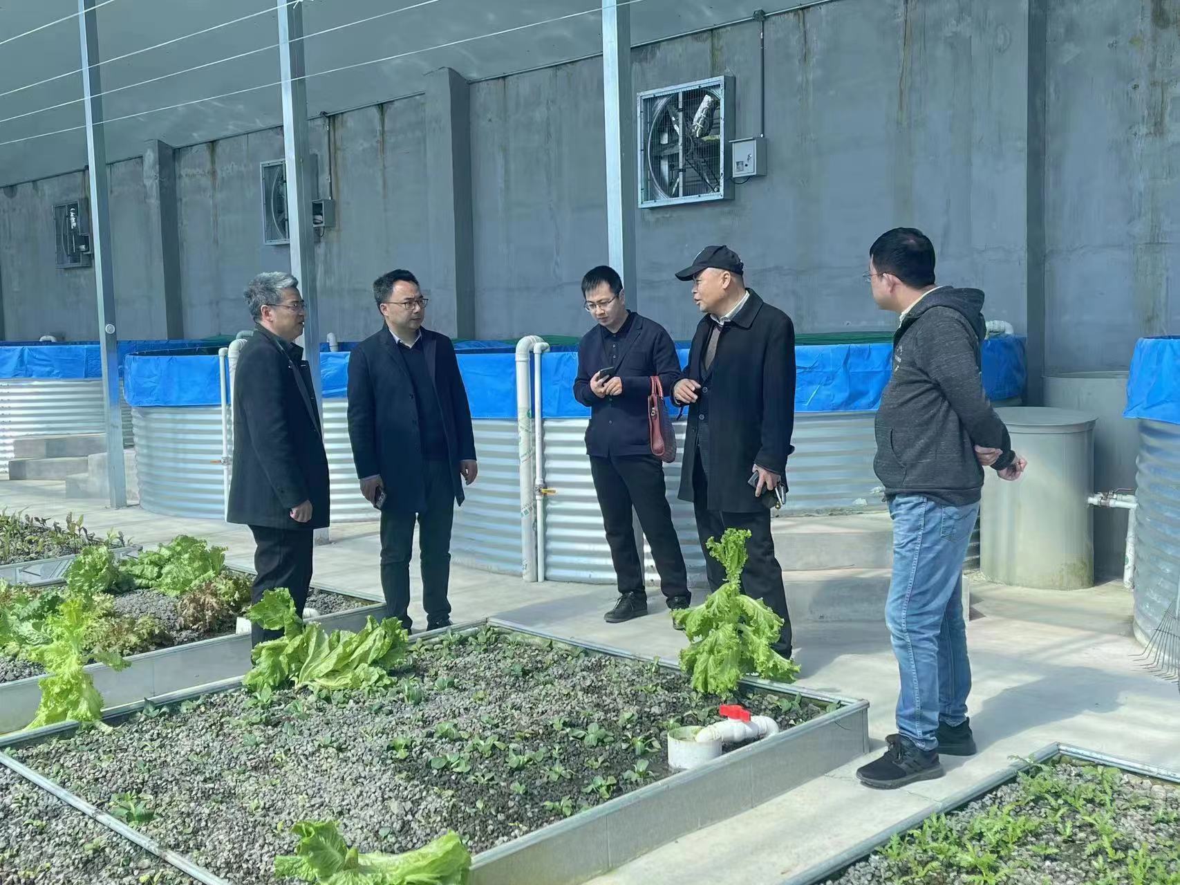 赵新勇一行首先前往玉林村新修建的乡村民宿和“鱼菜共生”生态农业采摘园进行实地考察,玉林村党总支书记刘瑞成对采摘园“互利共生”系统进行了系统的介绍。
