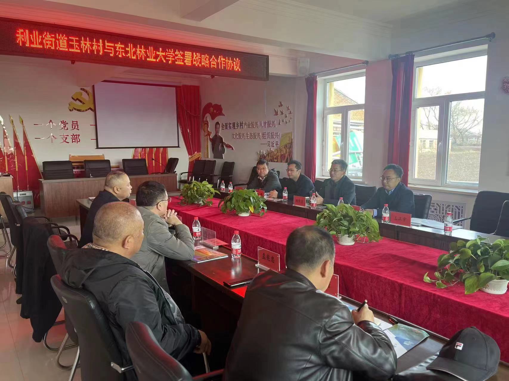 玉林村党总支书记刘瑞成从党的建设、乡村振兴、文旅融合、碳汇资源等方面介绍了玉林村发展情况。玉林村依托苗木花卉产业,瞄准“碳”市场,挖掘“碳”潜力,在今年3月20日达成全省首例农村碳资产交易签约,向交通银行股份有限公司黑龙江省分行出售价值23.6万元的碳资产。他表示,“校地企”深入合作是实现乡村振兴的重要举措,村党总支将以党建为引领,发展特色苗木产业,探索碳汇交易,进一步与大学寻求深入合作,共谋发展。
