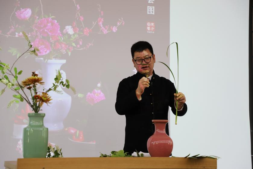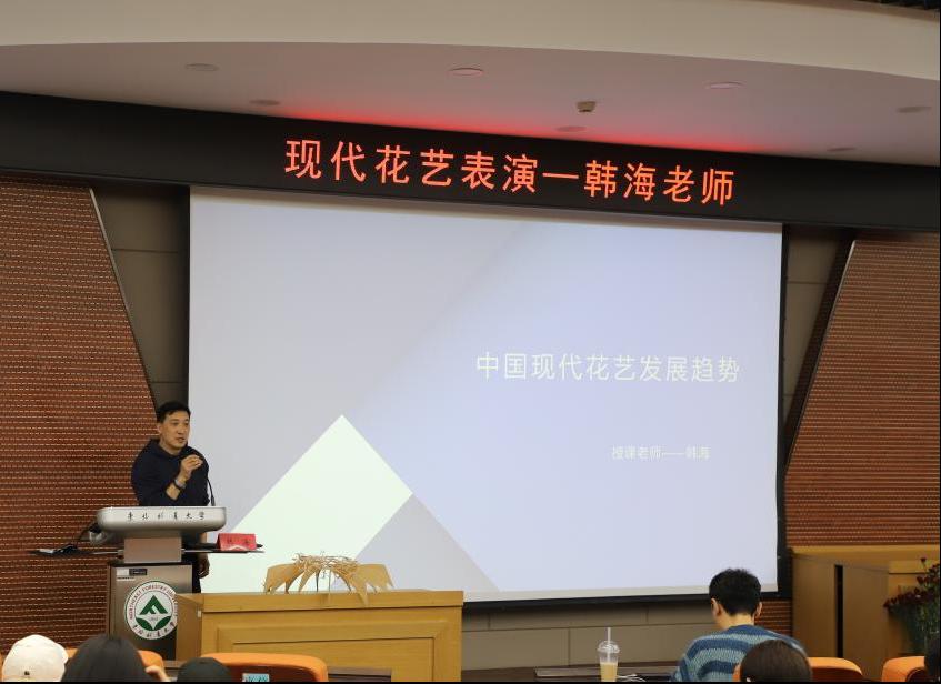 大赛前期,组委会精心筹备,为东林参赛团队开设多期培训课程,着力提升学生的花艺水平。组委会特邀请韩海、张超老师为东林学子及各大高校花艺爱好者们举办两场主题学术报告会,共同感受现代花艺表演和中国传统插花的魅力。