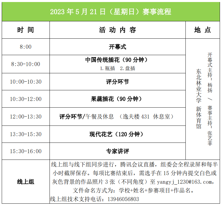 同时,组委会在betway中国西汉姆联游泳馆前设置场外宣传预热区域,我们将在14:00-16:00开展丰富的花艺体验活动,充分激发同学们的花艺设计灵感与美学精神,比赛结束后同学们可进入场地参观花艺设计展,场馆预计开放时间为16:00-19:00,同学们可以通过欣赏比赛作品感受自然之美、设计之妙!