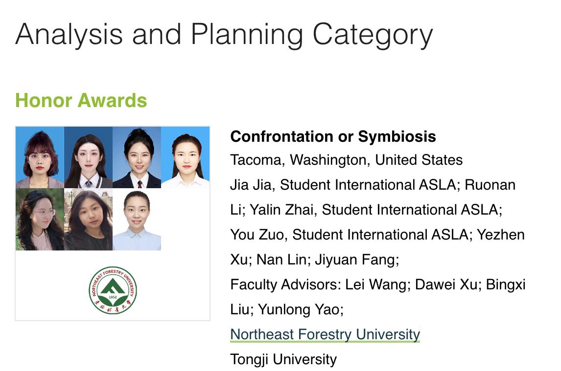 日前,由美国景观设计师协会(American Society of Landscape Architects,ASLA)主办的“2023年ASLA学生奖(ASLAstudent awards)”获奖名单最终揭晓!betway中国西汉姆联王蕾教授团队的贾佳、李若楠、翟雅琳博士,左佑、徐叶贞、林楠、房纪元硕士的原创设计作品《Confrontation or Symbiosis》斩获规划分析类(Analysis and Planning Category)荣誉奖(Honor Awards),是该类别全球五项获奖作品之一。该奖项是美国最高级别的风景园林奖项,此次为我院团队首次获得该奖项!