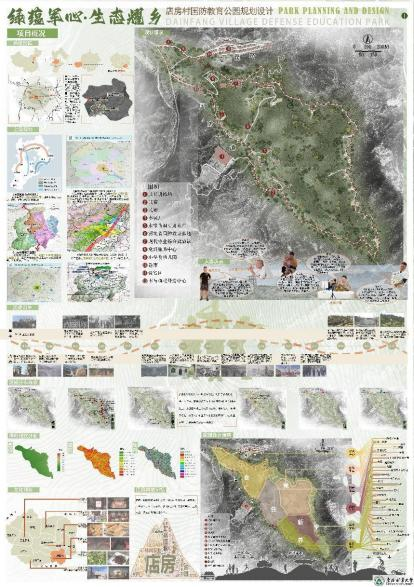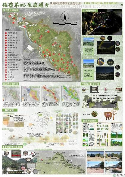 店房村位于河北省保定市阜平县太行山脉一隅,曾有晋察冀边区抗战历史,涌现出数位革命先烈,具有浓厚的红色文化氛围。7月初,宋老师团队入驻店房村深入调研,发现店房村具有建设“红色店房”和“全域旅游”的潜力,同时存在红色文化资源利用不足、缺少综合服务设施、产业整合度低等问题。因此,设计方案以弘扬红色文化,推动国防教育,完善服务设施为目标,致力于打造以红色文化教育为主,以军事项目体验和生态观光为辅的特色体验式国防教育主题公园。