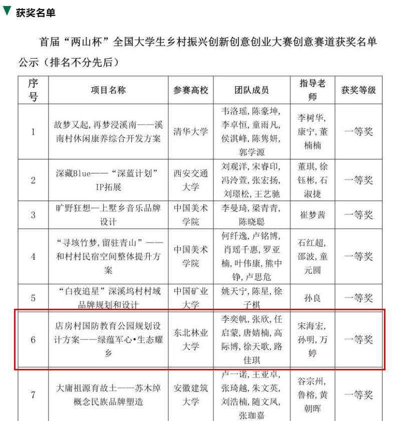 此次“两山杯”大赛创意赛道围绕乡村规划、乡村文创和人文公益三个方向,从全国12个省份28个乡镇47个乡村中研选114道“乡村问题”,收获来自海内外187所高校的657项方案。大赛自4月初开始报名,7月提交初赛成果,9月进行决赛评比,历时五个月,经多轮调研与专家指导,最终遴选出20个一等奖方案、30个二等奖方案、50个三等奖方案、97个优秀奖方案。此次“两山杯”大赛为同学们提供了一个展示创新热情,以实际行动推动乡村振兴和生态文明发展的机会。