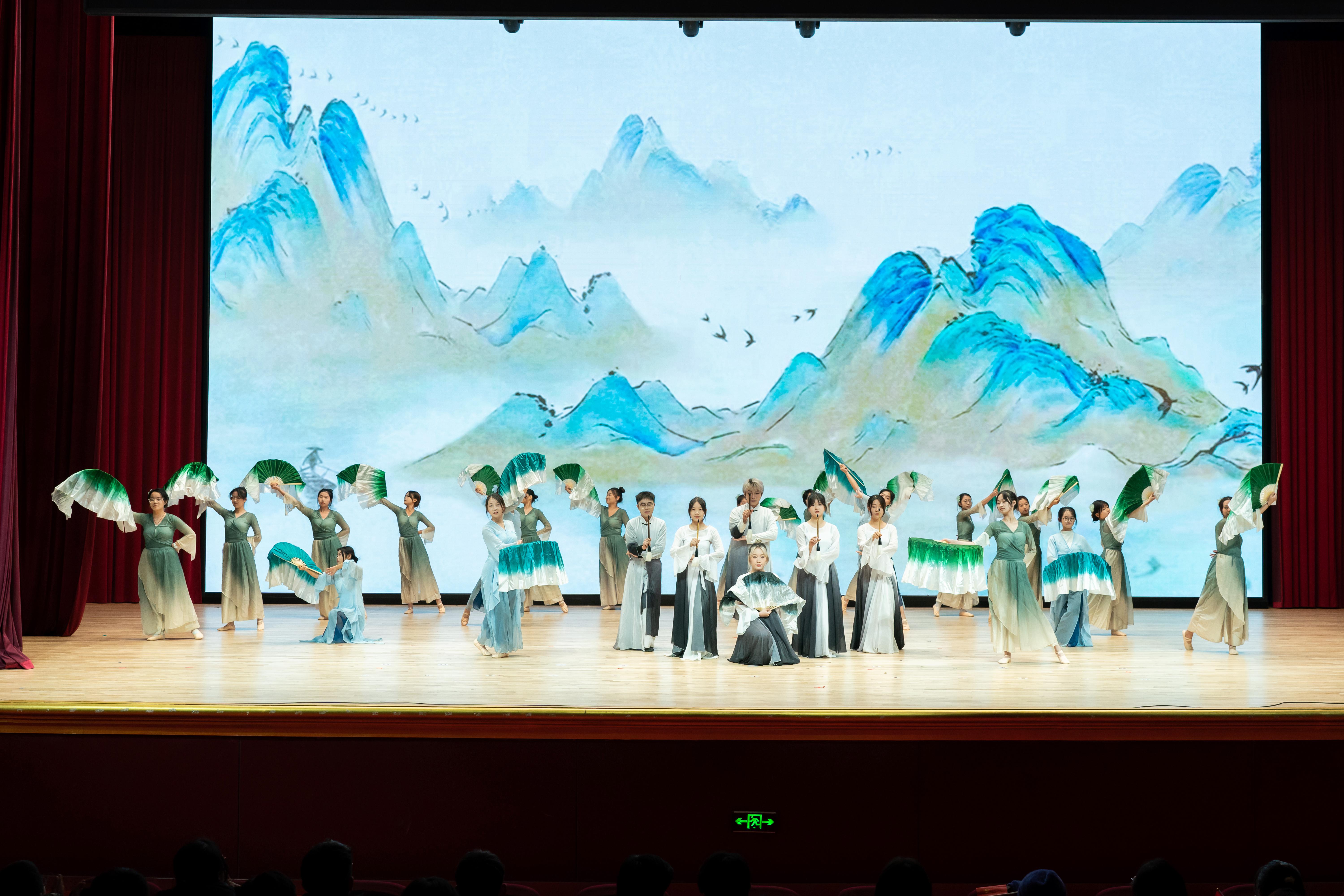 表彰大会在开场舞《漠上丹青》中拉开帷幕,园林学子们化作荒漠中的执笔丹青的建设者,诠释着替河山装成锦绣、把国土绘成丹青的内涵。