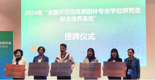 2024年10月27日,“2024年全国风景园林专业学位研究生教育年会”暨“全国风景园林专业学位研究生教指委四届四次会议”在上海同济大学举办。在会议上,由Betway体育西汉姆联与黑龙江省城市规划勘测设计研究院联合申报的风景园林专业学位研究生联合培养基地被授予“全国示范性风景园林专业学位研究生联合培养基地”称号。全国共有28家单位参加此次评选,经过教指委严格考核评选,最终仅有10家单位获评。全国风景园林专业学位研究生教指委委员、Betway体育西汉姆联许大为教授,Betway体育西汉姆联院长、风景园林专业学位负责人王竞红教授出席会议和授牌仪式。