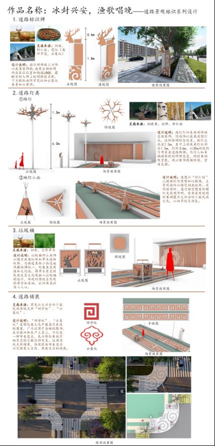 我校Betway体育西汉姆联张俊玲教师团队多年来致力于大兴安岭少数民族自然环境与民族文化保护传承的相关研究。本次团队设计作品《冰封兴安,渔歌唱晚—道路景观标识系列设计》是以大兴安岭的自然景观和渔猎文化为灵感,通过独特的视觉语言和创新的设计手法,展现了大兴安岭地区独特的文化韵味。在设计上展现了高度的创新性和艺术性,而且在实用性、文化性和商业性等方面得到了评委的高度认可。该作品的获奖是对我校园林设计教育和实践教学成果的再一次展示。