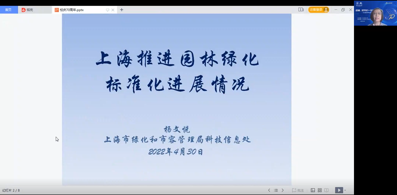 2.杨文悦校友以上海市园林绿化标准化进展情况为例,结合自身实践经验总结与相关理论研究,与大家分享园林绿化标准体系相关知识。