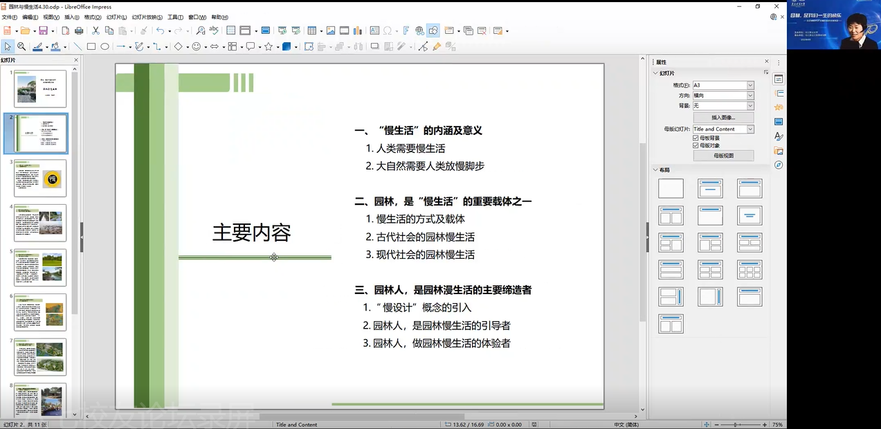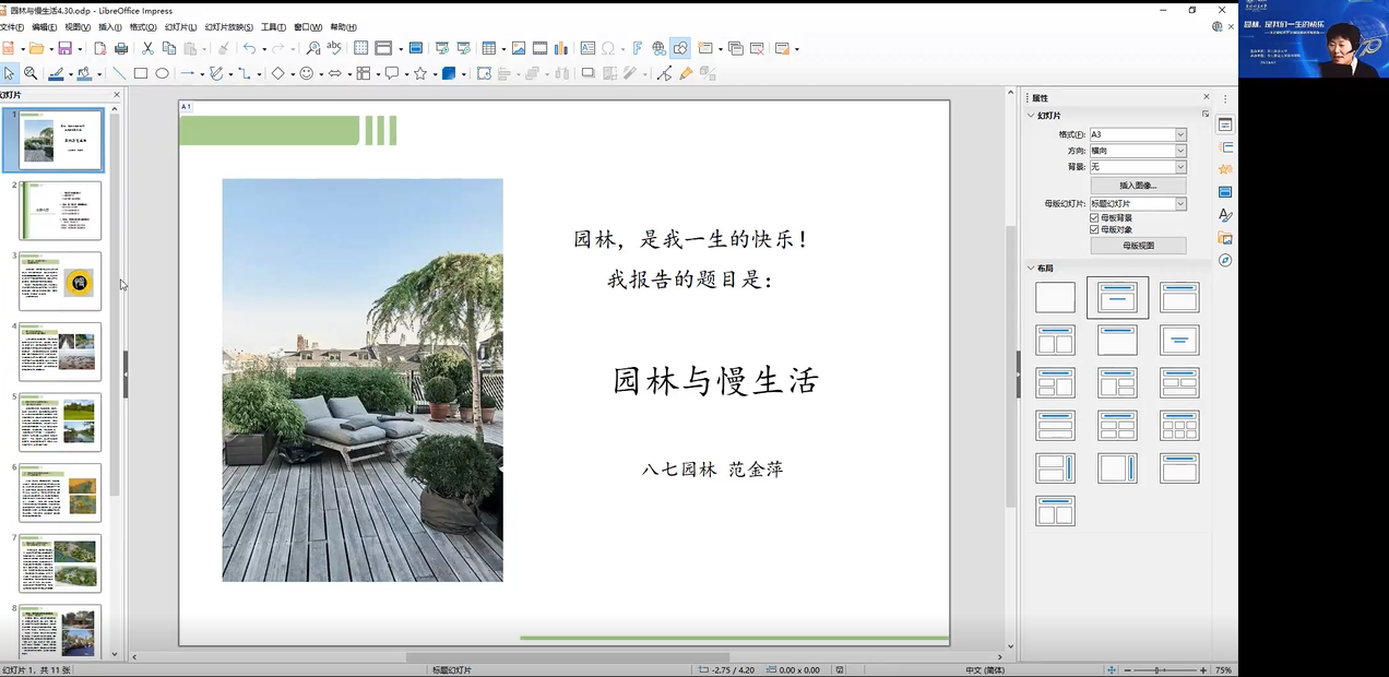 4.范金萍校友以“园林与慢生活”为主题,结合有关概念,为我们勾勒出园林人的慢生活美好画卷。