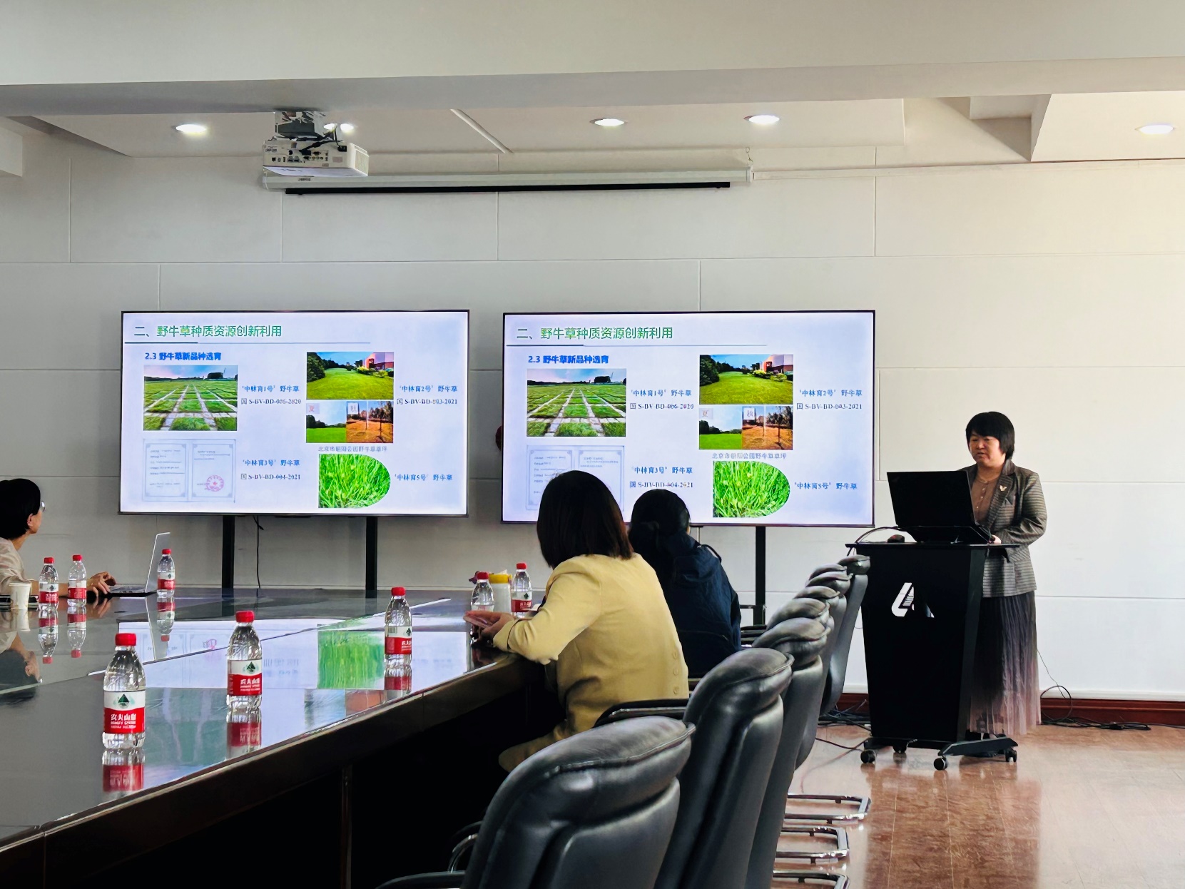 报告会上,李晓霞副研究员首先介绍了中国林业科学院生态保护与修复研究所和国家林业和草原局草原中心的情况简介。随后,她详细介绍了野牛草等重要草种的种质资源如何进行创新利用,以推动草原生态系统的可持续发展。因此,她分享了多年来在该领域的研究成果和实践经验,并深入剖析了种质资源创新利用的重要性以及相关技术和方法。