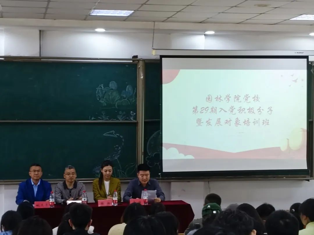 开班式上,赵新勇书记表示,希望参加此次培训班的全体学员能够有所收获,争取早日成为一名中共党员。 学院党委副书记、副院长杨扬老师宣读培训班教学和管理的有关规定,鼓励学员脚踏实地,严肃认真对待每一节课。风景园林专硕研究生第一党支部书记姚亮亮老师宣读学员组长及学员名单。2021级风景园林3班纪婷婷代表全体学员发言,号召同学们认真学习,踊跃实践,以优异的成绩完成课程结业,进一步向党组织靠拢。