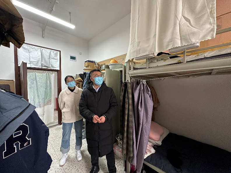 老师们分组、分楼层有序开展,深入走访了各学年宿舍,察看寝室内具体情况,深入了解学生返校后生活状态。