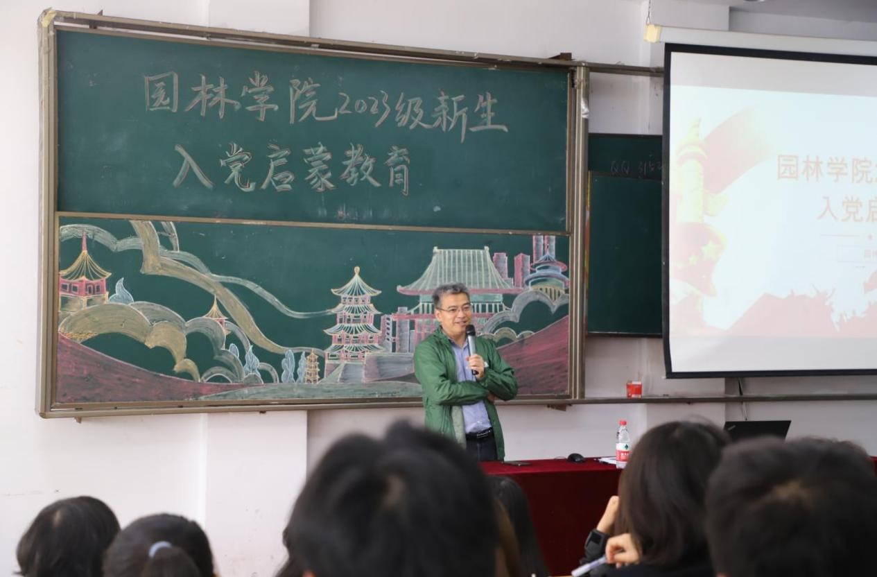 为切实做好2023级新生的入学教育工作,深入学习贯彻党的二十大精神和习近平新时代中国特色社会主义思想,引导新生自觉践行生态文明理念、大力弘扬塞罕坝精神、积极靠近党组织、争做社会主义合格建设者和可靠接班人,我院于9月22日上午举办2023级新生入党启蒙教育主题讲座。讲座由学院党委书记赵新勇老师主讲,23级新生辅导员张丽莹老师主持。