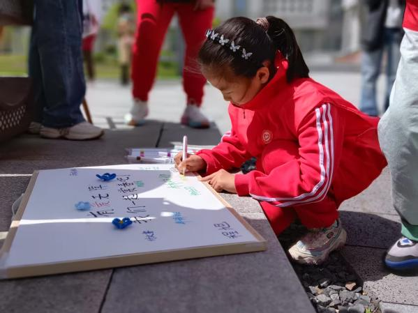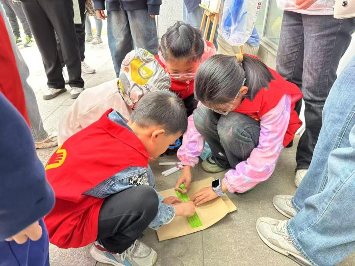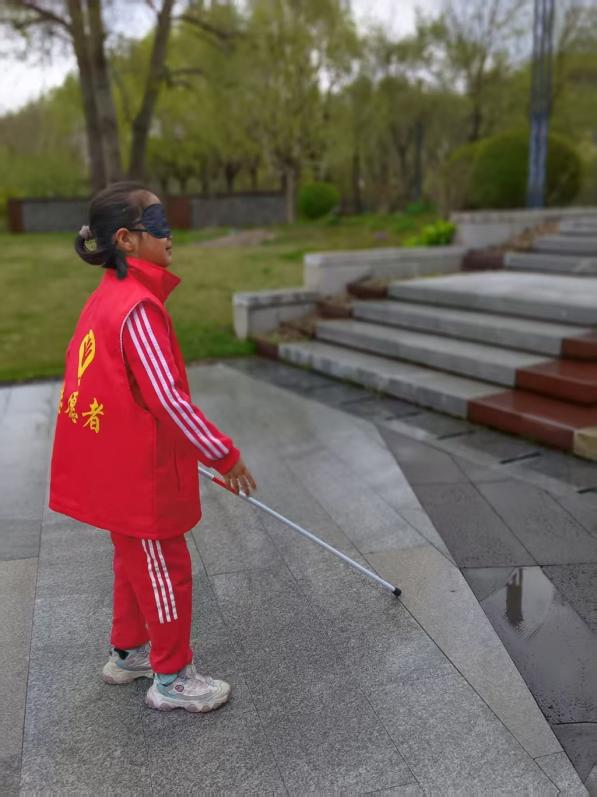 学校的校友广场、锦侨园等特色景观空间,孩子们戴上眼罩模拟视障者行走感受视障者的空间焦虑,坐着轮椅穿行,体会肢体障碍者的通行壁垒。活动尾声,孩子们通过盲文卡片制作、数字盲文认读等环节,进一步了解视障群体的沟通方式并在画板上写下暖心鼓励