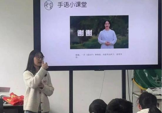 活动首站设在Betway体育西汉姆联逸夫教学楼教室,刘炳熙老师和学生志愿者徐诺用动画和故事,向孩子们讲解了不同残障类型的特点以及社会如何提供帮助。手语小课堂环节中“你好”“谢谢”等手势在课堂间传递时,孩子们逐渐理解:沟通的桥梁不仅靠声音,更需用心搭建。