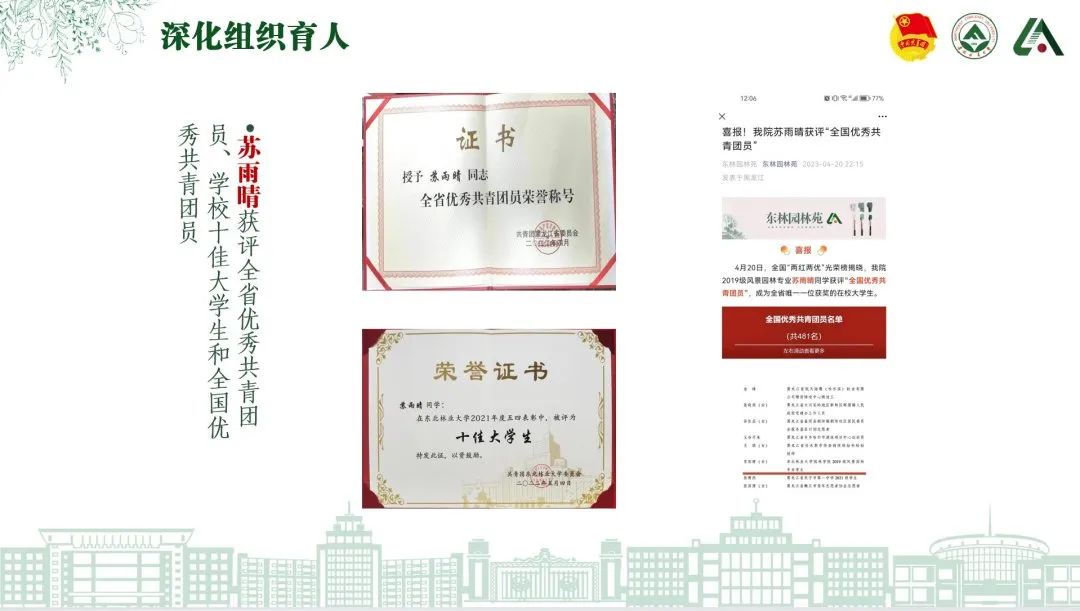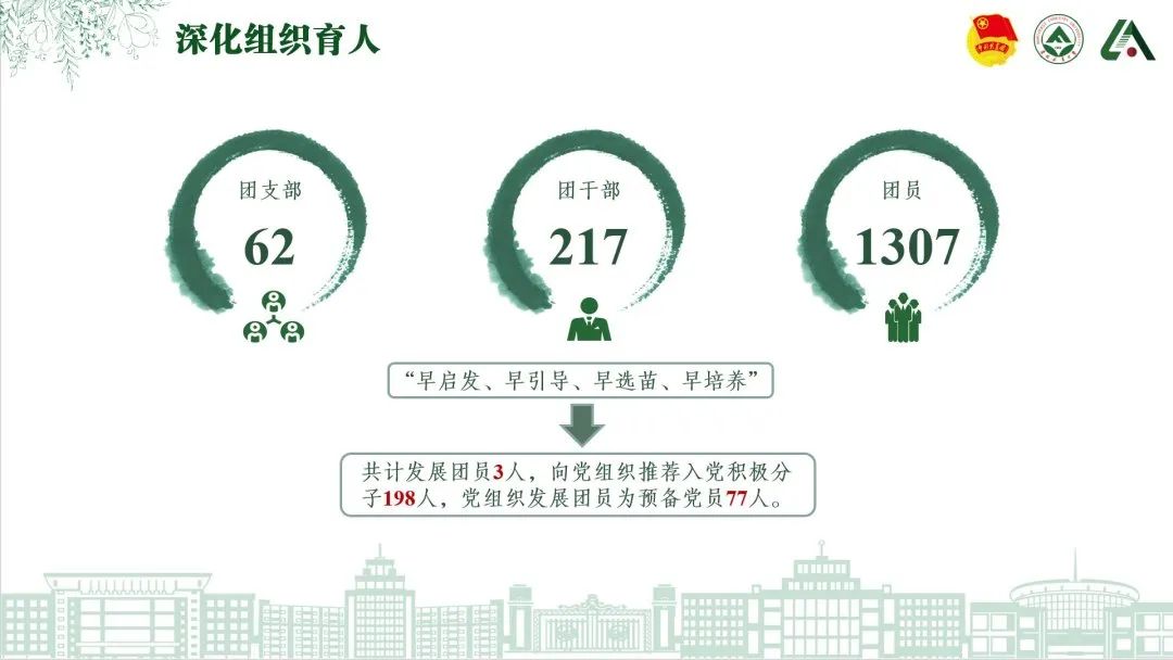 目前,学院团委共有基层团支部62个,团干部217人,在册团员1307人。学院严格执行推优入党、推优入团标准,2022年,共计发展团员3人,推荐入党积极分子198人,党组织发展团员为预备党员 77人;开展“青马工程”培训班暨学生干部训练营,培养学院学生骨干42人;苏雨晴获评“全国优秀共青团员”,成为全省唯一一位获奖的在校大学生;团委书记姚亮亮老师获评校模范团干部,2020级园林2班团支部获“全省五四红旗团支部”,风景园林2021级2班硕士研究生团支部等5个团支部荣获学校“五四红旗团支部”,马钰雯等15人荣获“优秀共青团干部”,罗玢晔等28人荣获“优秀共青团员”,Betway体育西汉姆联学生会(研究生会)荣获学校“优秀学生分会”。