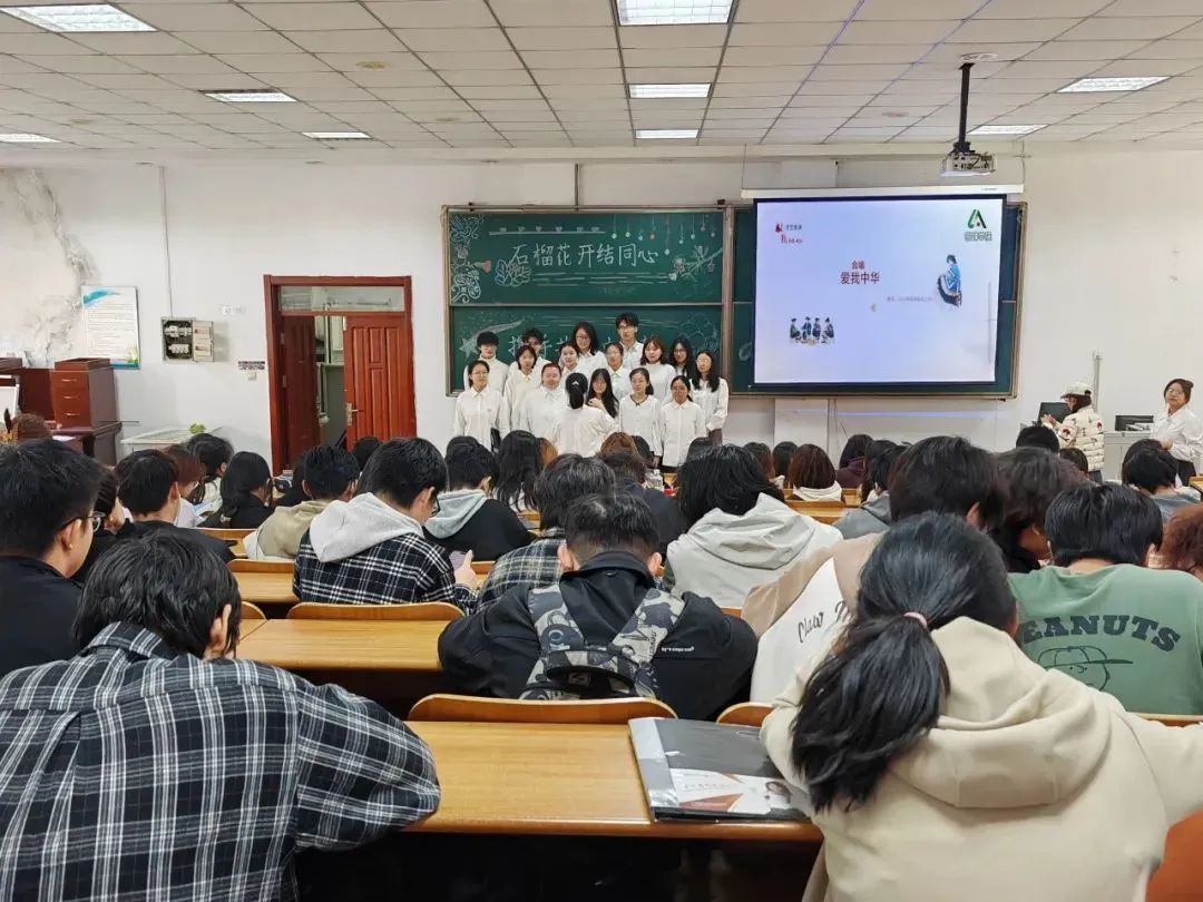 “石榴花开,象征着民族团结和繁荣,是中国多民族国家的一个美好比喻。石榴籽紧紧抱在一起,表现了民族紧密团结在一起的景象。通过这次班会,我深刻体会到了团结的力量。正如石榴籽紧紧相依,我们各民族同学也应该像石榴籽一样,紧密团结,共同成长。尊重文化的差异性相互借鉴,相互学习坚定文化自信。我相信,只要我们紧紧团结在一起,我们就能共同创造一个更加美好的未来。”2024级风景园林二班张馨雅这样说到。