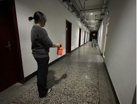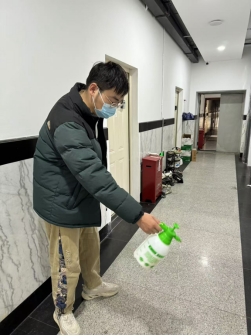 消杀过程中,志愿者们共同协作,对宿舍内的桌面、地面及寝室楼内的走廊、楼梯等区域进行全面消毒。喷洒消毒液后关闭门窗进行进一步的消杀,消杀结束后及时进行开窗换气。在消毒过程中大家严格按照相关规定的方法和操作进行,保证消毒的全面性、有效性、及时性,有效降低学生受病毒感染的风险。在未来的日子里,我院将继续关注学生的身体健康状况,发现问题及时采取各种有效措施,为大家健康安全地成长和发展保驾护航。
